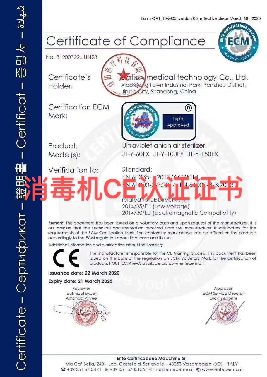 佳田醫療科技紫外線負離子消毒機取得了CE證書,可出口歐盟國家中國網2月5日訊國家......